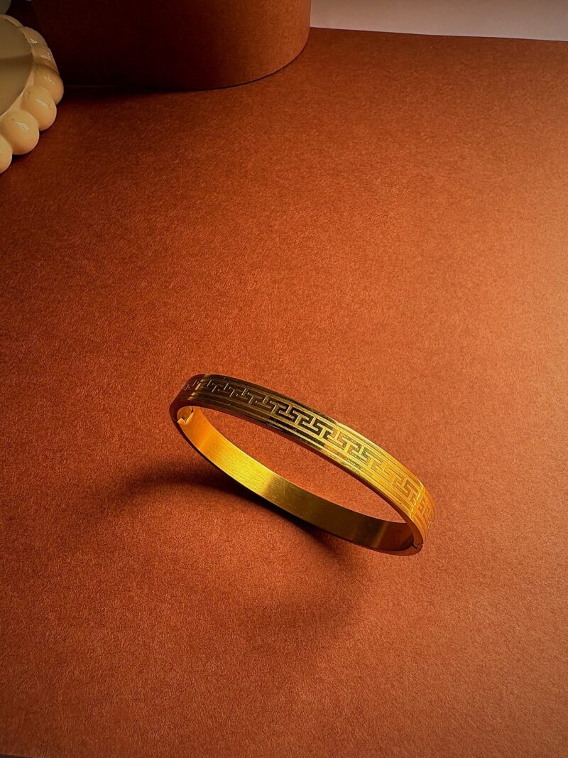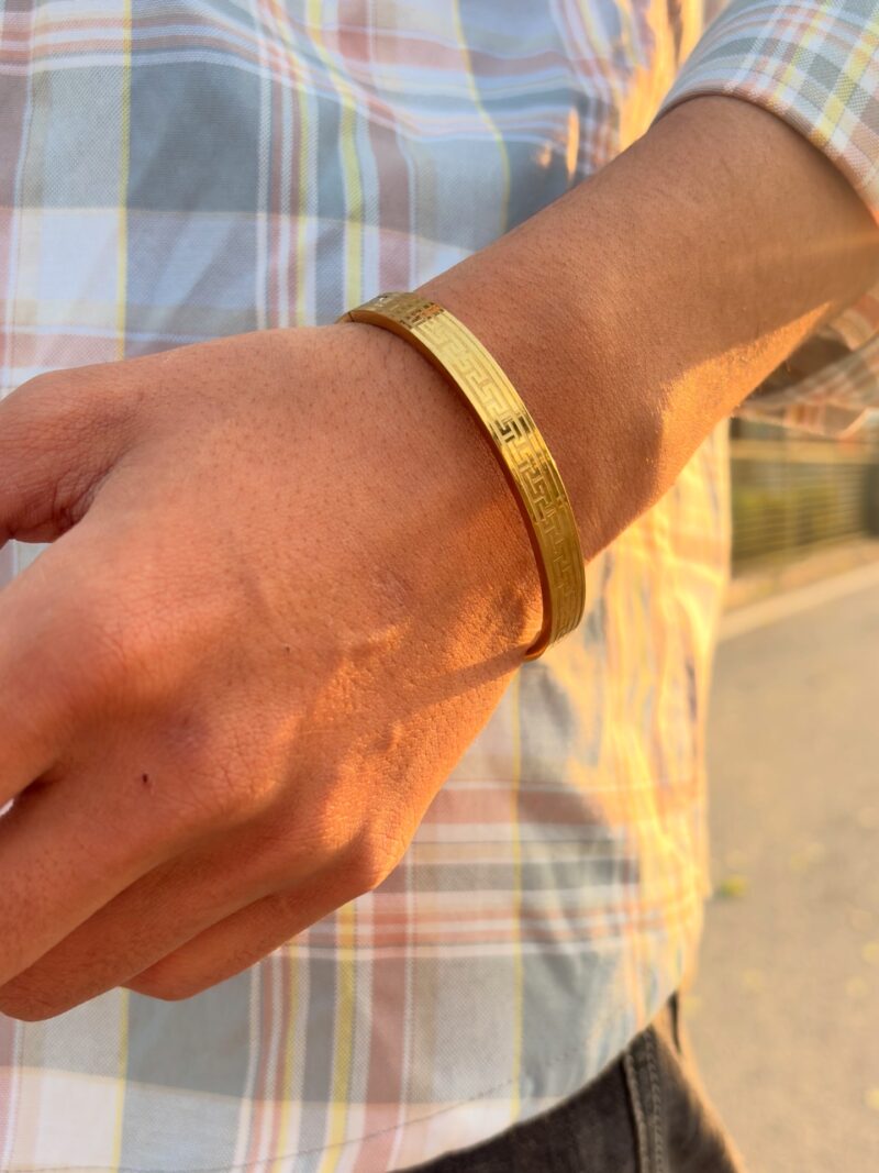 Whether worn as a statement piece or as part of your daily style, the Gold Kada reflects confidence and simplicity in the most elegant way. A meaningful addition to your collection and a perfect gifting choice for someone who values classic style with a modern edge.