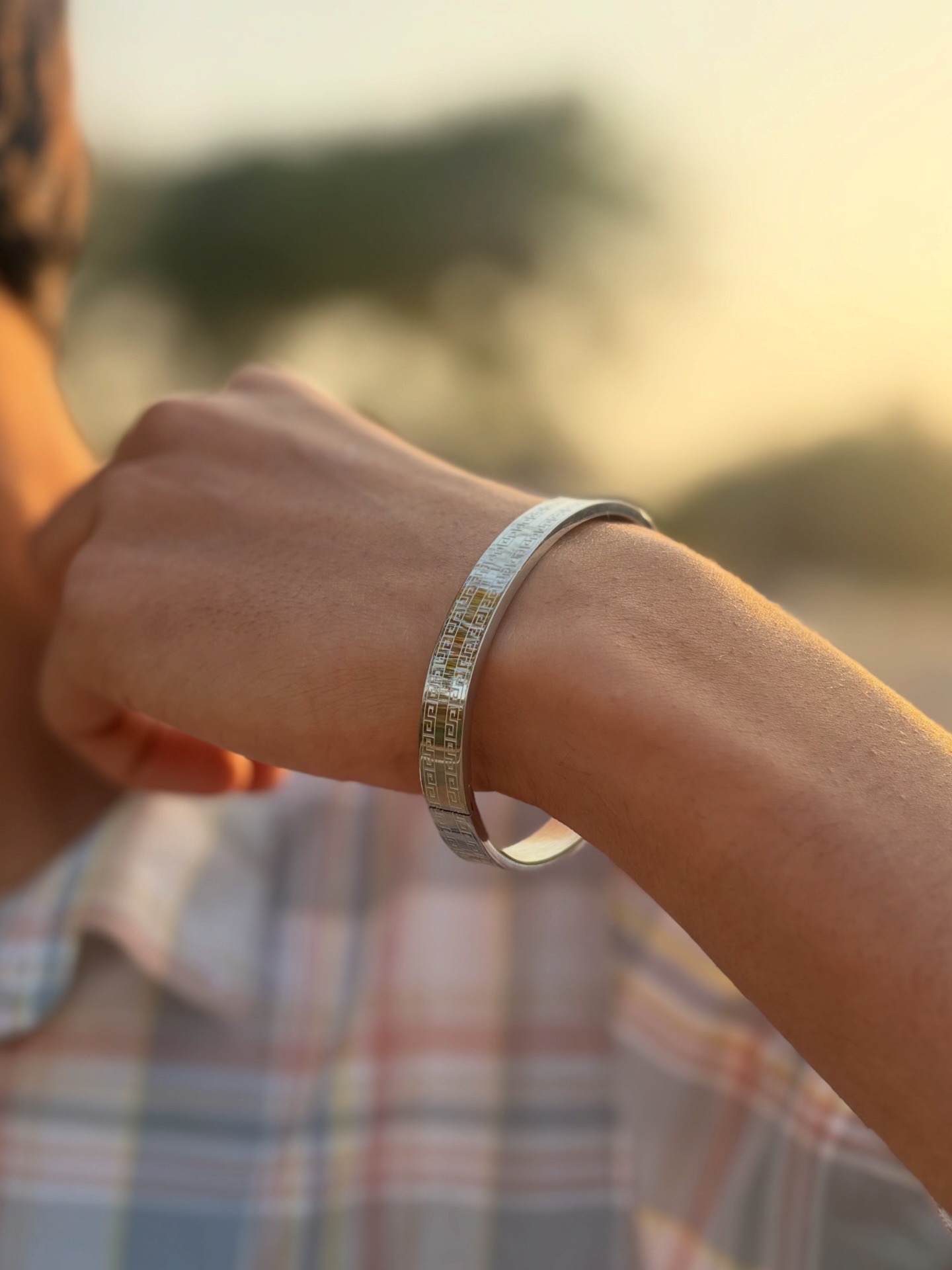 Whether worn as a statement piece or as part of your daily style, the Silver Kada reflects confidence and simplicity in the most elegant way. A meaningful addition to your collection and a perfect gifting choice for someone who values classic style with a modern edge.